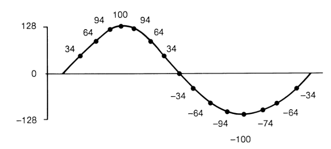 - 200 DATA 0,34,64,94,100,94,64,34,0,-34,-64,-94,-100,-94,-64,-34