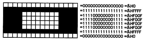 Un mode monochrome - pouvant en fait se composer de n'importe quelle couleur d'arrière-plan et de premier plan, et pas seulement en noir et blanc - utilise juste un bit par pixel, avec huit pixels par octet. Par conséquent, un écran 320x200 utilise 320x200/8 ou 8 000 octets. Un écran de 640x200 utilise 16 000 octets. Les modes entrelacés de 400 lignes nécessitent deux fois plus de mémoire que les modes normaux de 200 lignes, car les 200 lignes supplémentaires de résolution verticale nécessitent un autre écran d'informations graphiques.