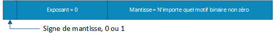 | Intervalle de valeurs de Mantisse | Non zéro |