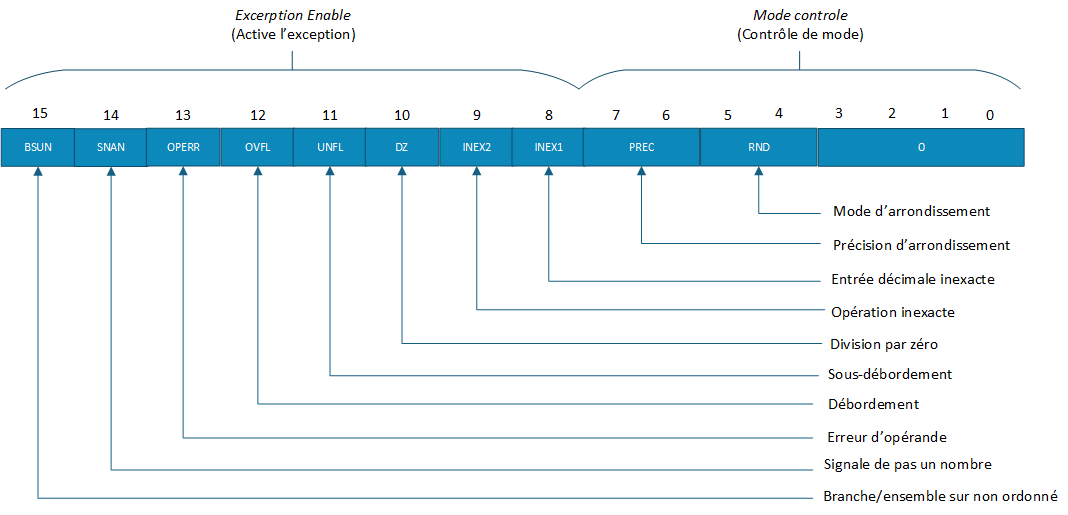 - Registre de contrôle à virgule flottante 16 bits (FPCR)
