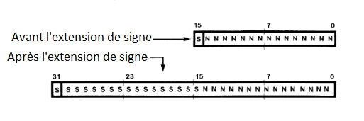 Le signe MOVSX (Move with Sign Extension) étend une valeur 8 bits à une valeur 16 bits et une valeur 8 ou 16 bits à une valeur 32 bits.