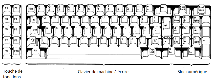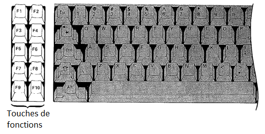 - Dix touches de fonction, étiquetées F1 à F10, se trouvent sur le côté gauche du clavier.