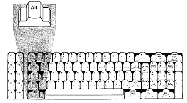 Autres décalages : En plus de la touche Shift faisant passer le clavier de bas en haut, il y a deux autres touches Shift sur le clavier de la machine à écrire. Ce sont les touches Alt (Alternative) et Ctrl (Contrôle). Vous utilisez ces deux touches comme les touches Shift ; c'est-à-dire que vous maintenez la touche Alt (ou Ctrl) enfoncée, puis appuyez sur la touche souhaitée. Ensuite, vous pouvez relâcher les deux touches. Cependant, Alt et Ctrl provoquent des choses différentes.