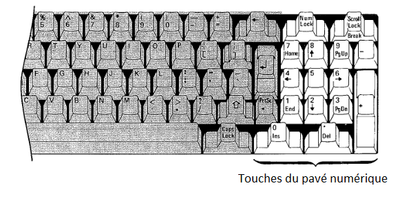 - Le pavé numérique, semblable à un clavier de calculatrice, se trouve sur le côté droit.