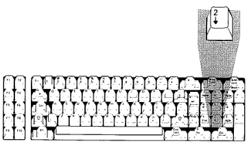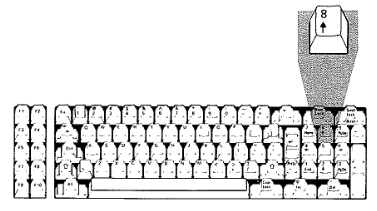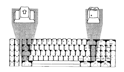 Sous la touche Enter se trouve une touche intitulée PrtSc en haut et * en bas. PrtSc signifie «Print Screen». Lorsque le clavier est en mode minuscule, appuyer sur cette touche provoque la saisie d'un astérisque. Dans les majuscules, cependant, il s'agit d'une touche spéciale provoquant l'impression d'une copie de ce qui est à l'écran sur l'imprimante (LPT1:). Donc, si jamais vous avez besoin d'une copie papier (imprimée) de ce qui est actuellement affiché, appuyez simplement sur l'une des touches Shift et maintenez-la enfoncée, puis appuyez sur la touche PrtSc. (Remarque : les caractères non reconnaissables par l'imprimante sont imprimés en blanc.)