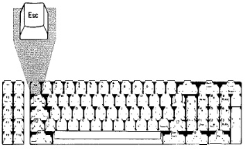| Esc | ![]() Lorsque vous appuyez n'importe où sur la ligne, efface toute la ligne logique de l'écran. La ligne n'est pas transmise à BASIC pour traitement. S'il s'agit d'une ligne de programme, elle n'est pas effacée du programme en mémoire. |