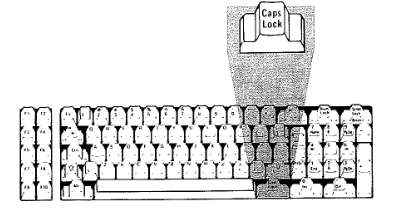 Ce clavier n'a pas de touche Shift Lock normale. La touche Caps Lock est similaire à une touche Shift Lock, mais elle ne vous donne que des lettres majuscules et ne vous donnera pas les caractères majuscules sur les touches numériques ou autres. Après avoir appuyé sur cette touche, vous continuerez à recevoir des lettres majuscules jusqu'à ce que vous appuyiez à nouveau dessus. Vous pouvez obtenir des lettres minuscules lorsque vous êtes en état de verrouillage des majuscules en appuyant et en maintenant enfoncée l'une des touches Shift. Lorsque vous relâchez la touche Shift, vous revenez à l'état Caps Lock.