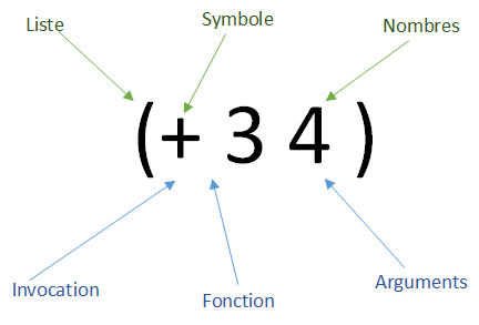 - L'évaluation de la liste appellera la fonction + avec 3 et 4 comme arguments