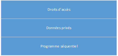 Un processus est constitué d'une structure de données privée et d'un programme séquentiel pouvant opérer sur les données. Un processus ne peut pas opérer sur les données privées d'un autre processus. Mais des processus concurrents peuvent partager certaines structures de données (comme un tampon de disque). Les droits d'accès d'un processus mentionnent les données partagées sur lesquelles il peut opérer :