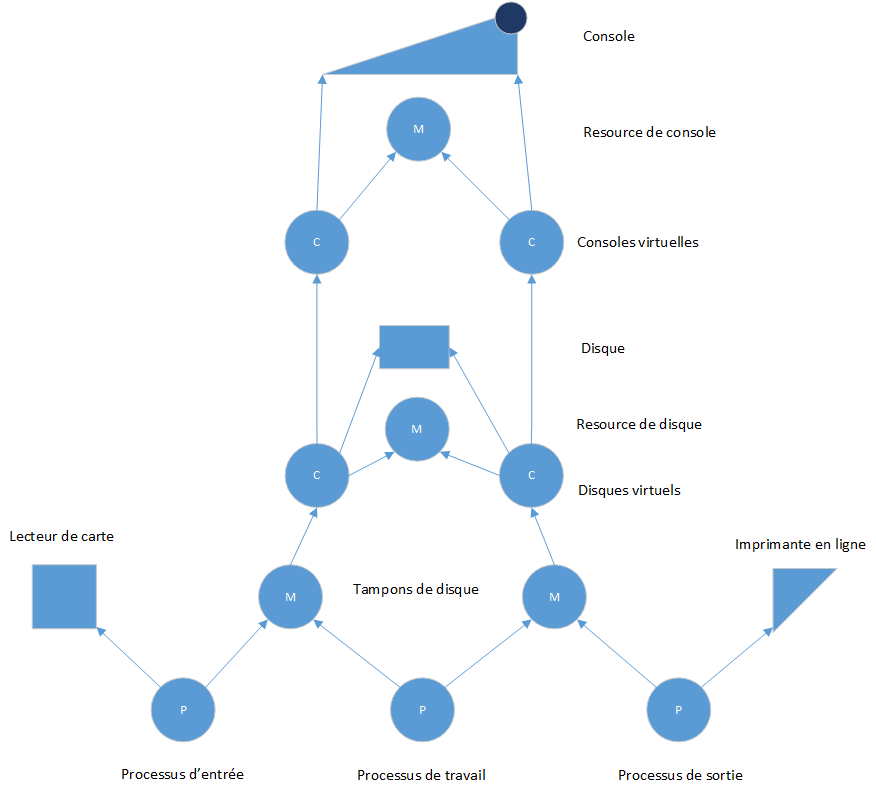 - Un système d'exploitation hiérarchique peut être étudié de manière progressive comme une séquence de machines abstraites simulées par des programmes (Dijkstra 1971).