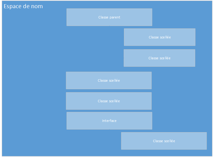 Les classes scellés, appelé en anglais sealed class, sont des classes ne pouvant pas être de classe héritant d'eux. Par conséquent, les classes scellés ne pourront jamais devenir des super-classes et n'auront jamais de classes filles. De cette manière, un développeur pourra s'assurer que sa classes ne sera pas cacher en arrière d'une autre classes à son insu dans une histoire de droit d'auteur par exemple. On aura donc une syntaxe comme ceci :