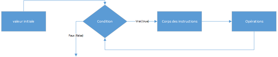 for (initialisation; condition; opération) { corps de la boucle; } |