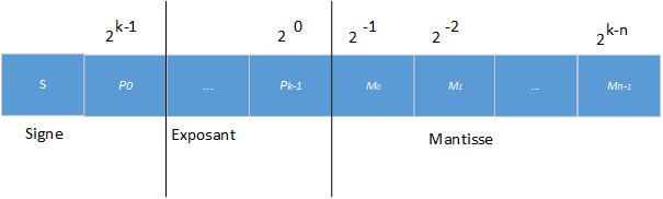 Il faut noter que nous avons ajouté un 1, manquant dans la notation binaire de la mantisse. Nous l'avons fait parce que la mantisse est toujours normalisée et commence par un 1 par défaut.