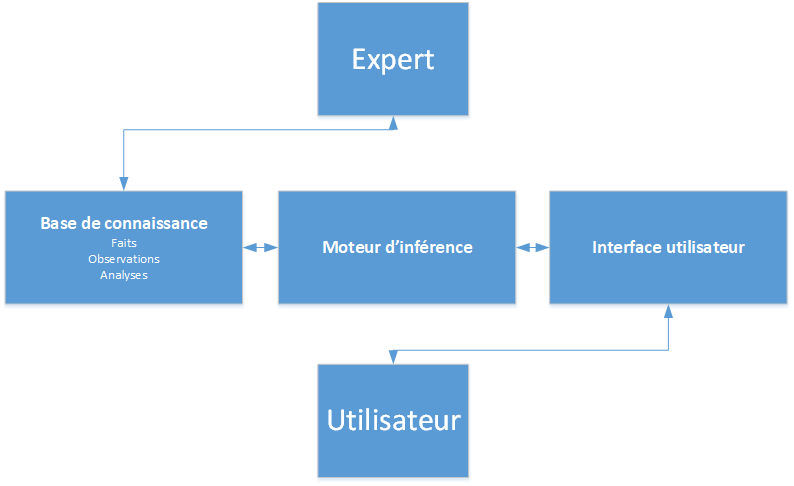 Les systèmes experts sont les actions qu'appliquera un expert dans un domaine différent de l'informatique en utilisant l'informatique. Le système expert tentera, déterminer la bonne action a entreprendre en utilisant des questions. Ainsi, il se basera sur des faits, des règles contenu dans une base de connaissance afin d'aider à prendre la bonne décision.