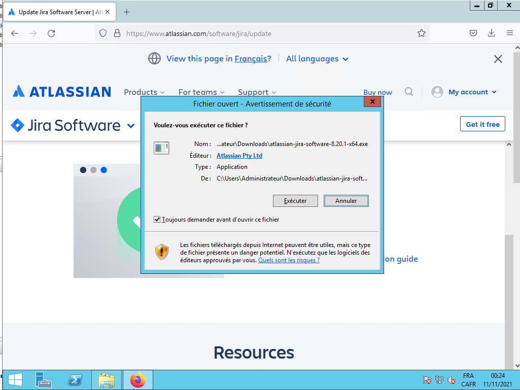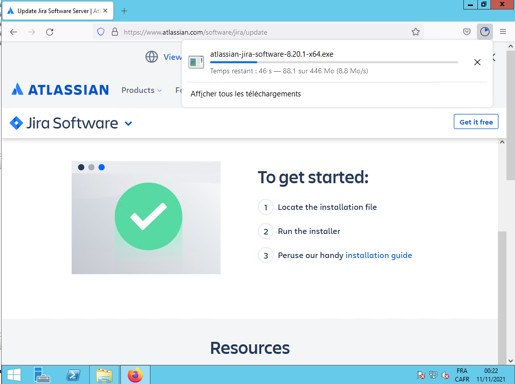 Voici les différentes étapes de l'installation sous Windows de JIRA 8. Commencer par aller sur le site de Atlassian et aller télécharger le fichier d'installation de JIRA 8 :