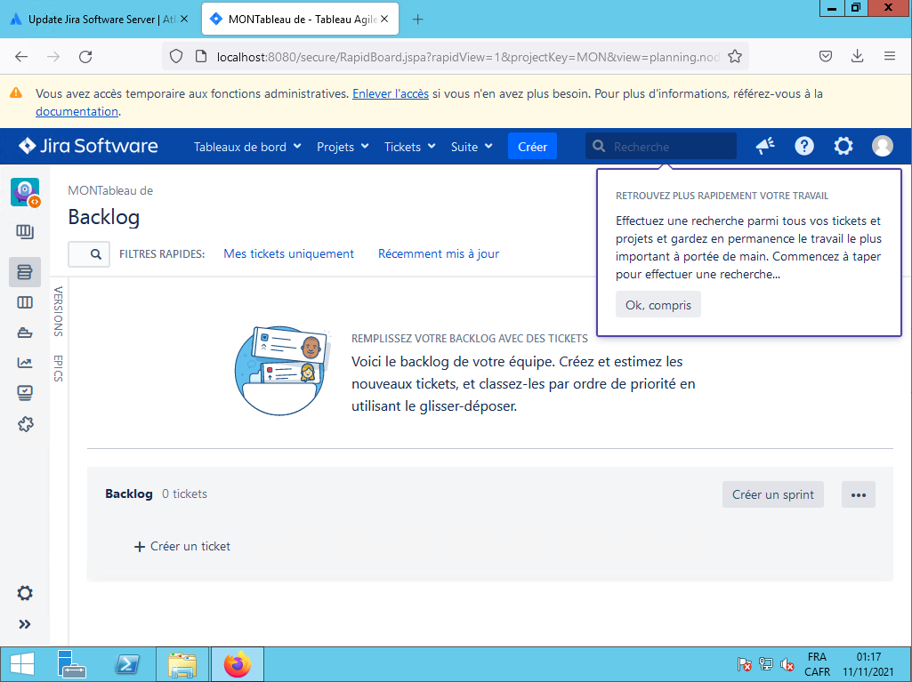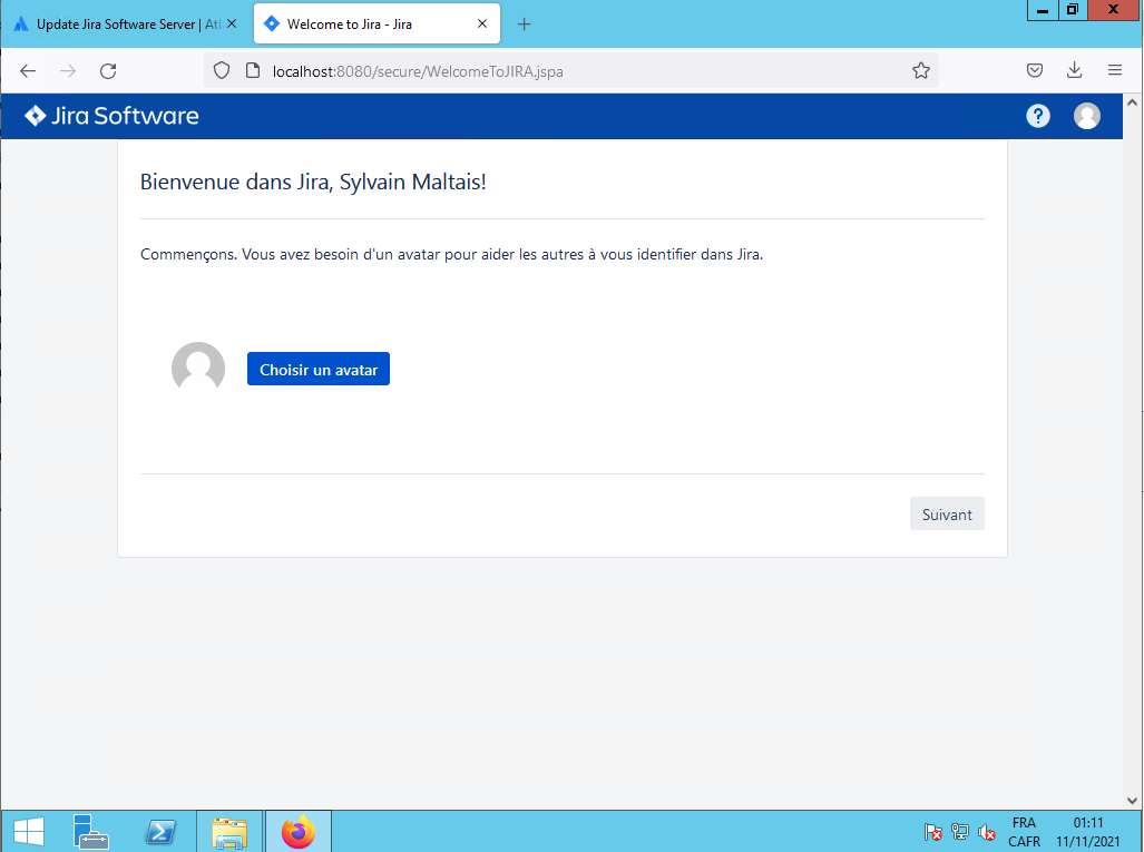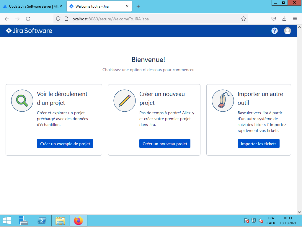 Il lance le serveur JIRA, vous le laissez continuer.
