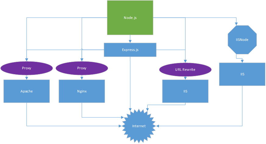Bien que Node.js dispose de son propre serveur Web, il est possible de l'installer avec d'autres serveurs Web. Voici différentes façon d'installer le Node.js sur d'autres serveurs Web :