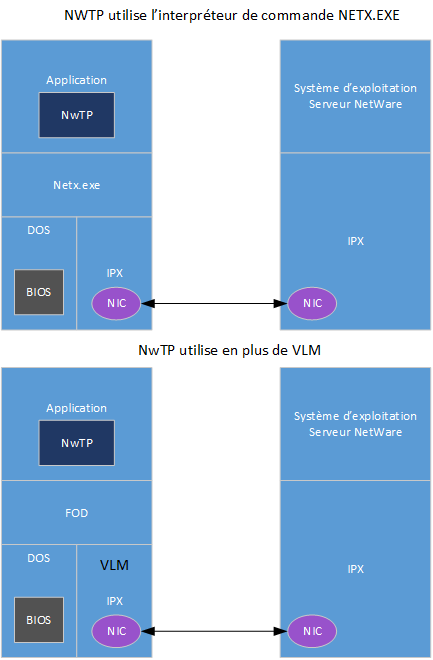 Mécanisme d'implémentation de l'API : Notez qu'en ce qui concerne NwTP, le fait qu'il soit utilisé par-dessus NETX.EXE ou les VLM n'a fondamentalement aucune importance.
