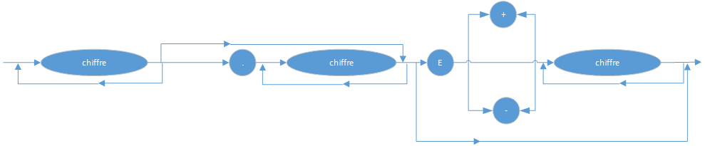 La notation décimale est utilisée pour les nombres. La lettre E précédant le facteur d'échelle se prononce «fois 10 puissance». La syntaxe des nombres non signés est résumée dans la figure suivante :