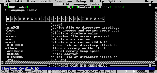 A la fin des années 1980, le QuickC était perçu comme une solution faisant partie du trio (QuickBASIC, QuickC, QuickPascal) proposé par Microsoft pour la programmation en langage de programmation évolué sur les micro-ordinateurs IBM PC.