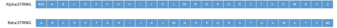 Le QuickPascal alloue 1 octet pour entreposer un caractère. Étant donné que chaque octet a 8 bits, vous pouvez avoir au plus 256 (28) valeurs de caractères. Chaque symbole est associé à l'un de ces nombres. Par exemple, A est le code ASCII 65, B est 66, C est 67, et ainsi de suite.