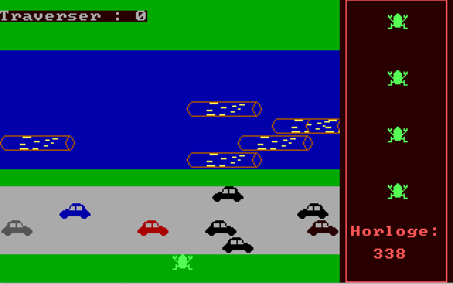 Le jeu Frogger est jeu dont le but est faire traverser à une grenouille une rue sans se faire écraser et ensuite de traverser une rivière en sautant sur des billots sans tomber à l'eau.