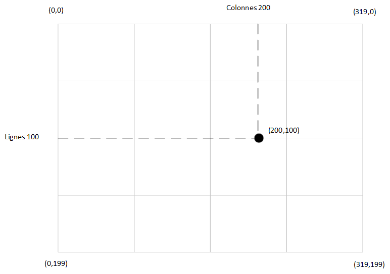 Les affichages graphiques ont une position de curseur entreposant l'emplacement actuel sur l'écran. Vous pouvez sélectionner une position de curseur spécifique avec les procédures _MoveTo et _MoveTo_w.