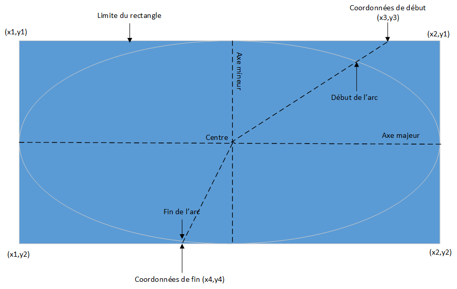 Maintenant, réfléchissez à la façon dont vous utilisez normalement les cercles, les arcs et les ellipses. Vous savez presque toujours où vous souhaitez positionner les limites de la forme et vous utilisez les coordonnées des limites pour calculer le point central.
