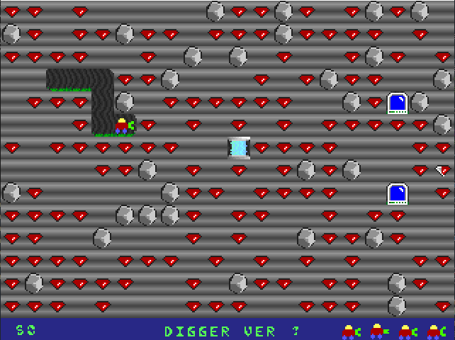 Il s'agit du populaire jeu graphique Digger de l'équipe Dark-Cloud. Il est développer en Turbo Pascal 7 et est basé sur les graphiques GamePro de dark-cloud (Ariel Keselman). Il propose 10 niveaux et lecteur HSC interne. La musique de fond et effets sonores pour Sound Blaster sont proposé dans le jeux en utilisant l'unité SB de Diego Iastrubni.