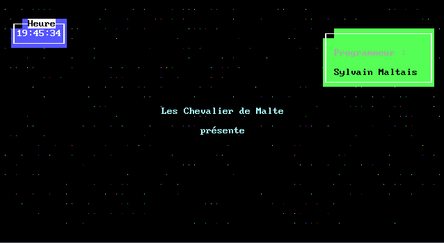 Le logiciel avait été conçu sur un Amdek System/88, lequel ne fonctionnait qu'à une vitesse maximal de 9,57 Mhz, pour obtenir une vitesse d'affichage satisfaisante, il fallait donc exploiter au maximum l'écran et ne pas utilisé l'écran graphique. De plus, la solution d'affichage graphique de Turbo Pascal, lequel utilisait des pilotes BGI n'était pas très performante, le choix était donc évident, qu'il était préférable de sacrifier certains caractères et d'utiliser plutôt l'écran de texte et non pas l'écran graphique. Aussi, bien que totalement inutile, il y avait un affichage de l'heure actuel, en seconde, afin de démontrer que l'affichage était performante. Cet ajout temporaire, fut garder de façon permanente puisqu'il évoquait également un symbole de stabilité. Car oui, lorsque leur arrêtait de progresser, le micro-ordinateur avait planté.