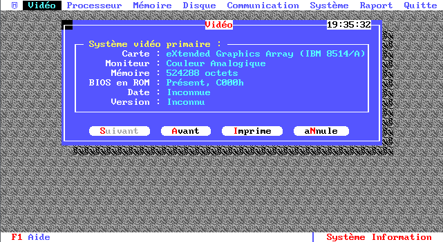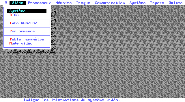 Les cartes graphiques étaient une grande passion pour beaucoup de monde à l'époque. Beaucoup de monde voulait connaître des informations précise sur l'affichage avant de connaître le micro-processeur de la machine. J'avais donc, délibérément placé le menu «Vidéo» avant le micro-processeur. La carte vidéo était aussi une intrigue intéressante, car la plupart des cartes Super VGA n'avait pas 256 Ko mais souvent 512 Ko ou 1 Mo de mémoire. Pourtant, lorsqu'on utilisait un logiciel professionnel, il affichait que la machine avait 256 Ko et non pas 512 ou 1 Mo et qu'il s'agissait uniquement d'une carte vidéo VGA.