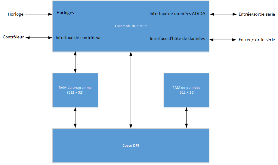 Le processeur de signal avancé, utilisé sur les cartes de traitement de signal avancé Sound Blaster 16, est une avancée technologique. Il peut effectuer un traitement mathématique à grande vitesse sur des données sonores numérisées. Il fournit également un traitement de signal en temps réel comme la compression/décompression du son. La flexibilité de la puce est qu'elle peut accepter le téléchargement d'algorithmes. Vous trouverez ci-dessous un schéma simplifié de cette puce :