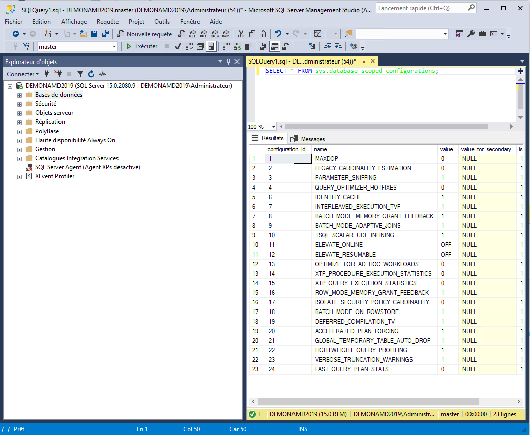 L'exemple suivant permet d'afficher toutes les variables de configuration :