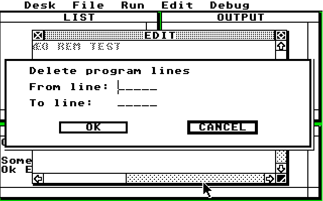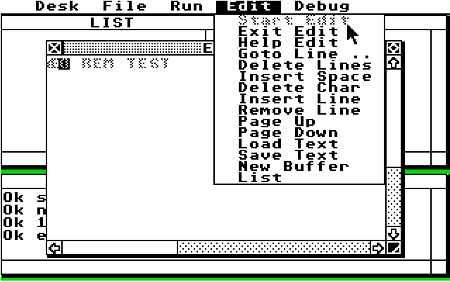 Le menu Edit contrôle les capacités d'édition de ST BASIC :