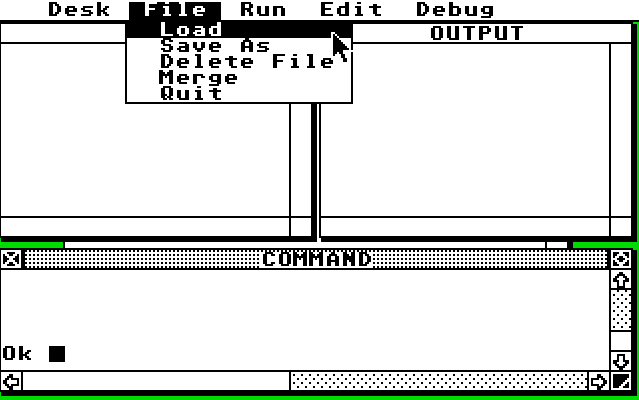 L'option Load Text charge le contenu d'un fichier nommé BASIC.BUF dans la fenêtre Edit.