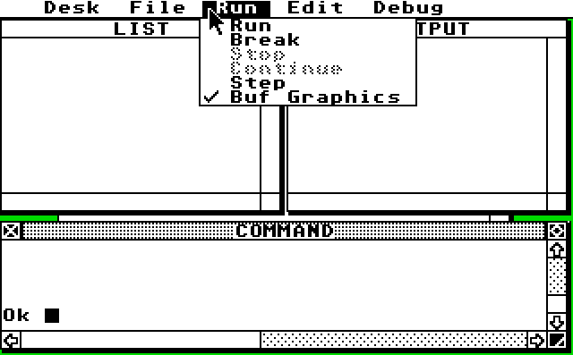L'option Buf Graphics est implémentée lorsque la coche se trouve devant l'option dans le menu Run. Si vous souhaitez sélectionner ou désactiver l'option Buf Graphics, cliquez sur l'option Buf Graphics.