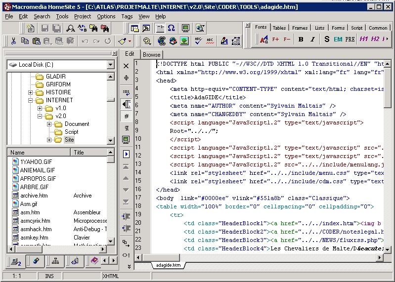 Il est hélas bien différent de DreamWeaver, il est beaucoup plus simple et n'a pas certaines mauvaises habitude de couper les lignes des codes sources trop longues en deux ! C'est un produit de la vieille école, il est beaucoup plus raide dans son fonctionnement. Faisant en sorte, qu'il est parfois difficile a remplacer. Il support la possibilité d'intégrer des macros en JavaScript. Il a deux onglets pour se promener dans sur deux projets différents à la fois, faisant de lui un produit décidément très unique.