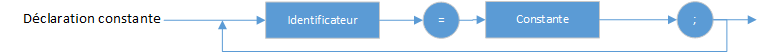 Une déclaration de constante déclare une constante dans le bloc contenant la déclaration. Une constante est un identificateur contenant une valeur ne pouvant pas changer. Un identificateur constant ne peut pas être inclus dans sa propre déclaration.