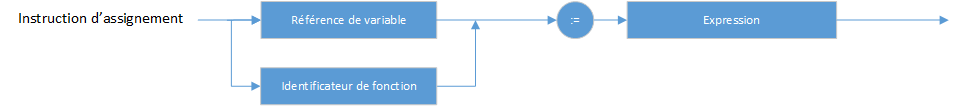 L'expression doit être compatible avec l'affectation avec le type de la variable ou le type du résultat de la fonction. Voici des exemples d'instructions d'affectation :