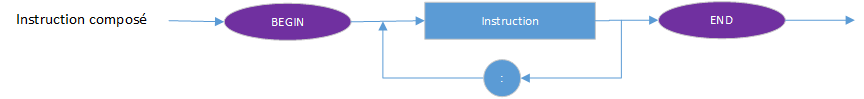 L'instruction composée spécifie que ses instructions composantes doivent être exécutées dans le même ordre qu'elles sont écrites. Les instructions des composantes sont traitées comme une seule instruction, cruciale dans les contextes où la syntaxe Pascal n'autorise qu'une seule instruction. Les mots réservés BEGIN et END mettent entre crochets les instructions, étant séparées par des points-virgules.