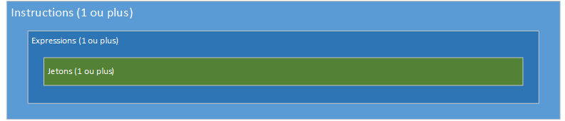 Voici une illustration d'une déclaration. Vous pouvez voir que les déclarations sont constituées d'expressions, étant constituées de jetons.