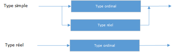 Les types ordinaux sont un sous-ensemble de types simples. Tous les types simples autres que les types réels sont des types ordinaux, étant déclenchés par 6 caractéristiques :
