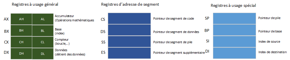 - De nombreuses opérations mathématiques ne peuvent être effectuées qu'avec le registre AX.