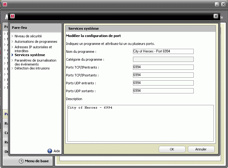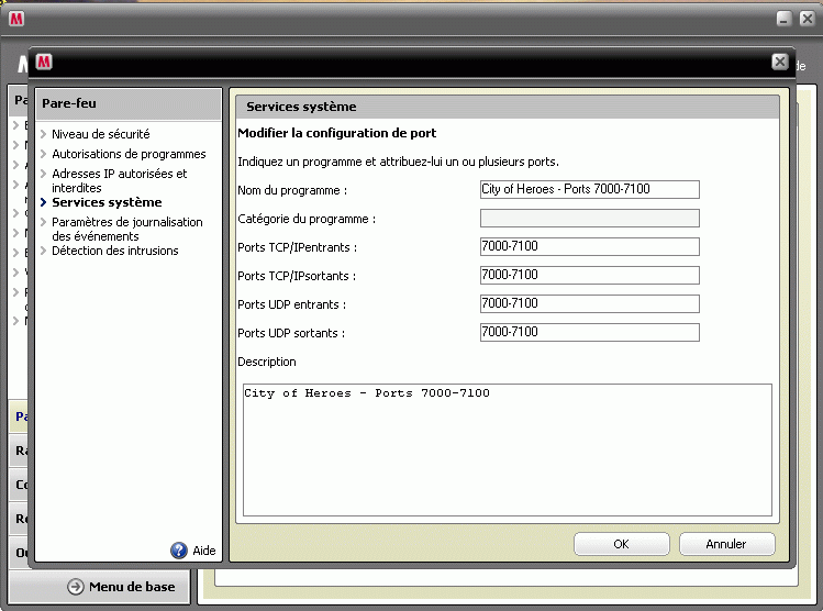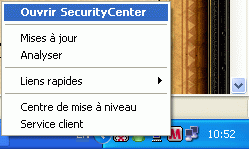 La configuration du mur de feu (Firewall) de McAfee 2007 avec se jeu peut se faire de la façon suivante. Tout d'abord, vous devez cliquer sur le barre de menu à droite (Tray Icon) et cliquer sur l'icône de McAfee :