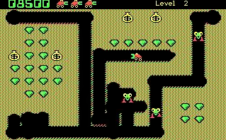 Les monstres passent parfois de la forme «nobbin» à la forme «hobbin», plus fréquemment aux niveaux supérieurs. Les Hobbins ont également le pouvoir de creuser et peuvent détruire des émeraudes et des sacs d'or en le faisant. Lorsqu'un monstre est tué, un autre apparaîtra en haut à droite de l'écran, jusqu'à un nombre maximal, dépendant du niveau. Une fois tous les monstres du niveau créés, une cerise apparaît à leur place. Si le Digger récupère cela, le mode bonus est activé et pendant environ quinze secondes (diminuant à mesure que le niveau de jeu augmente), le Digger est capable de manger les monstres. En conséquence, les monstres fuient désormais le creuseur plutôt que vers lui (similaire à Pac-Man). Un niveau se termine lorsque toutes les émeraudes ont disparu ou que tous les monstres ont été tués.