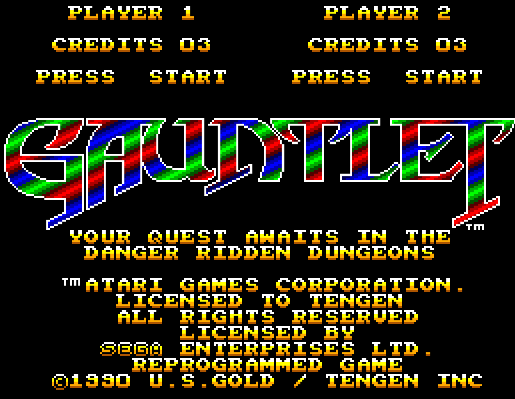 Le jeu Gauntlet est un jeu d'arcade de 1985 sur le thème de la fantaisie, développé par Atari Games. Il est noté comme étant l'un des premiers jeux d'arcade multi-joueurs d'exploration de donjons. Initialement appelé Dungeons, le jeu a été conçu par le game designer d'Atari Ed Logg. Il s'est inspiré de l'intérêt de son fils pour le jeu sur papier Dungeons & Dragons et de son propre intérêt pour le jeu Dandy du micro-ordinateur Atari 800 de 1983. Le développement du jeu s'est étendu de 1983 à 1985, avec une équipe dirigée par les concepteurs Ed Logg et Roger Zeigler. Le titre de travail est devenu légalement indisponible en avril 1985, il a donc été renommé Gauntlet en mai. Basé sur certaines des conceptions matérielles les plus élaborées de l'histoire d'Atari à ce jour, il s'agit du premier jeu à pièces de la société doté d'une puce de synthèse vocale.
