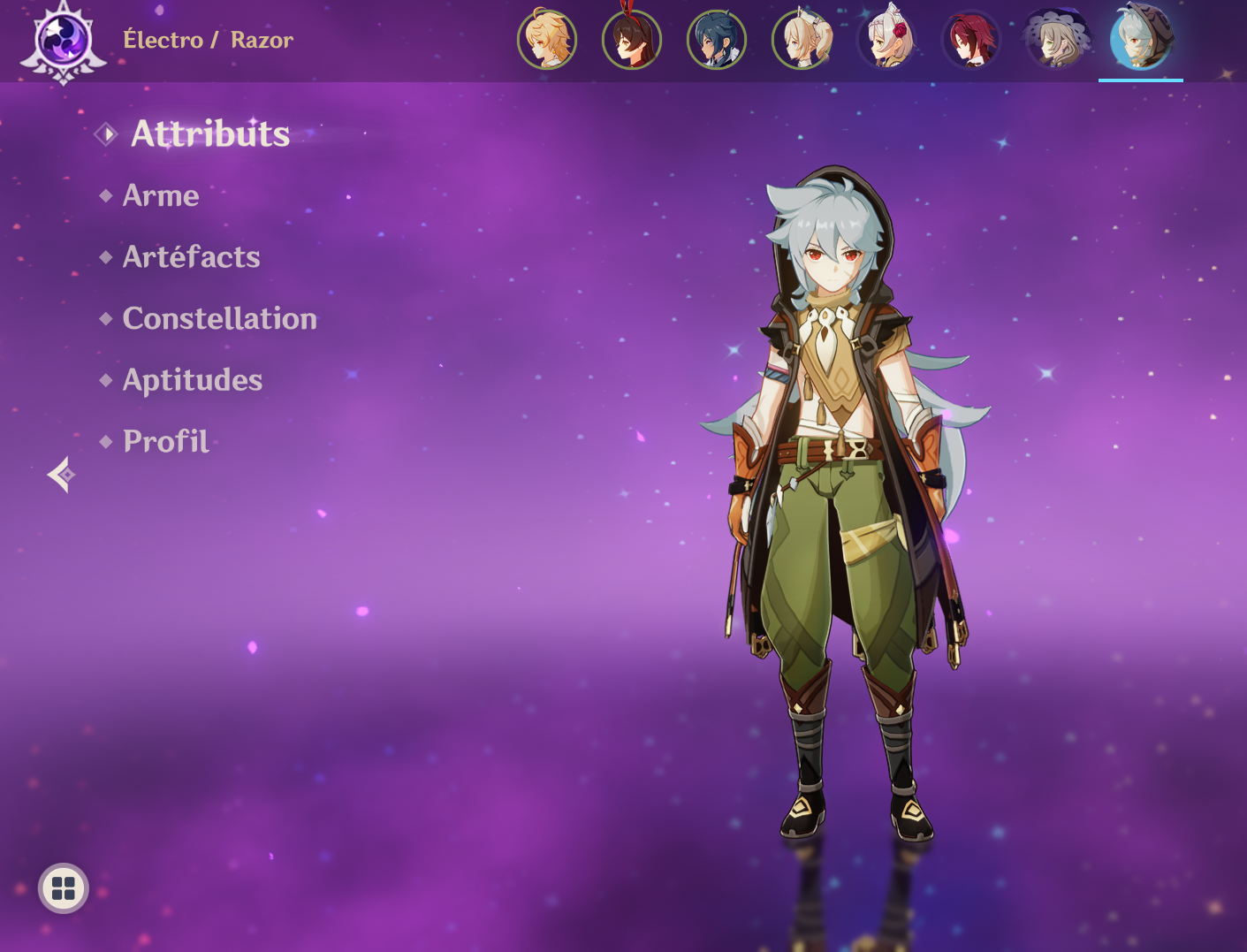 Abandonné alors qu'il était enfant, Razor a été recueilli par le loup du Nord, Andrius, et élevé par sa meute de loups aux Territoire des Loups (Wolvendom). Après une rencontre fortuite avec Varka, l'actuel Grand Maître des Chevaliers de Favonius, il a lentement recommencé à s'intégrer aux humains grâce à l'aide de sa professeur Lisa.