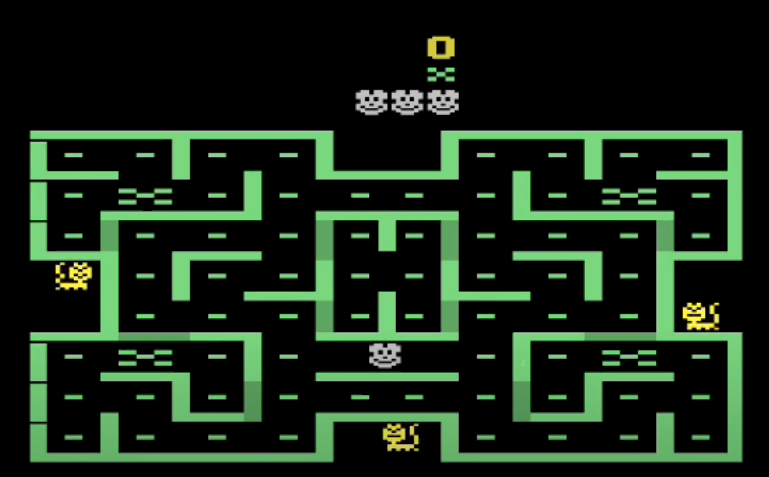Le jeu Mouse Trap est un jeu d'arcade de 1981 très similaire à Pac-Man. Cependant, il existe également des différences dans la façon de jouer. Ainsi, il faut manger le fromage éparpillé dans un labyrinthe et éviter de se faire prendre par les chats.L'élément unique de Mouse Trap est que les portes codées par couleur dans le labyrinthe peuvent être basculées en appuyant sur un bouton de la même couleur. Le jeu a été porté par Coleco en tant que titre de lancement de ColecoVision en 1982, puis plus tard sur Intellivision et
