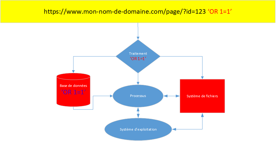 - Interprétation vs cloner : Une des plus grandes menaces découle du fait que la plupart des systèmes informatiques actuels son basé sur des chaînes de caractères du langage de programmation C, lequel malheureusement à un problème fondamentale, il interprète le contenu de cette chaîne de caractères. Par exemple, la chaîne de caractères du C utilise un caractère ASCII 0 pour indiquer la fin de la chaîne de caractères. De plus, des fonctions comme printf effectue un formatage par-dessus cette première interprétation et ainsi de suite jusqu'à atteindre les niveaux des plus des langages de programmation comme PHP, Perl, AWK avec des caractères d'échappement par exemple. Dans des langages de programmation comme le Pascal, un octet ou 2 octets ou 4 octets sont réservés pour indiquer la longueur de la chaîne de caractères, il n'y a donc aucune transformation, donc, une personne malveillante ne peut pas exploiter cette lacune. De façon concrète, un code malveillant peut se cacher après un code ASCII 0 car il est perçu comme un contenu étant situé après la fin de la chaîne de caractères et passera inaperçu avec une fonction strlen par exemple. Ainsi, le prix des transformations du C rendra le code plus court que le Pascal, mais augmente le risque de faille de sécurité pour les développeurs.