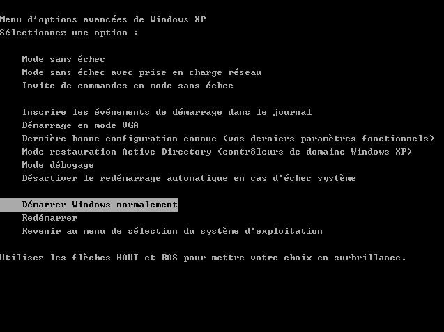 ATTENTION ! Il faut vraiment appuyer sur F8 au bon moment, c'est à dire immédiatement au début de démarrage, car sinon, il ne tiendra pas compte de votre action.